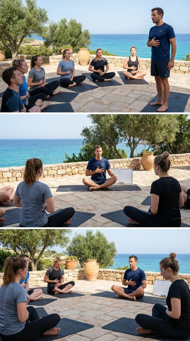 La práctica respiratoria y la comprensión fisiológica se desarrollan juntas. Los participantes respiran mientras aprenden y aprenden mientras respiran.